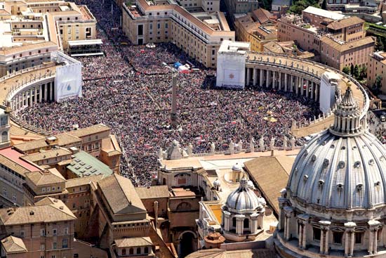 John Paul II-1.5 million people attend a ceremony on May 1, 2011, in St. Peter’s Square in which Pope Benedict XVI beatifies John Paul II 12.4.2014 550 × 367 Dvě šelmy vládnou Zemi. Výklad Janova Zjevení. 2